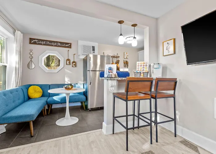 Die Villa Charming Charlotte Retreat - Close To The Plaza! hat auch eine komplette Küche, ausgestattet mit einem Herd und einem Geschirrspüler für den Komfort der Gäste. Etwa 500 Meter von hier entfernt finden Sie das Restaurant Fannie's African & Tropical Cuisine, das leckere Gerichte serviert. Die Bushaltestelle Main at 43rd liegt in unmittelbarer Nähe von der Unterkunft in Kansas City und bietet Transportmöglichkeiten in der Nähe.